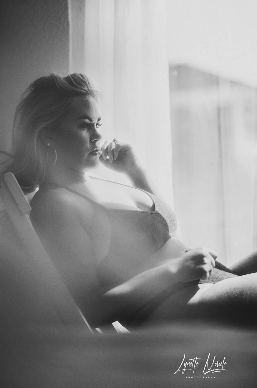 “OMG!! Lynette is an amazing photographer! My session was SO much fun! She was able to recreate the exact vision I had in my head. Boudoir is such a freeing experience. Lynette made me feel so beautiful! The quality of the pictures when I got them back was impeccable, I can’t wait to have them all put in a special book to look back on that one time when I turned 40. Thank you Lynette!! I will be back!”
